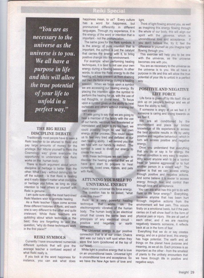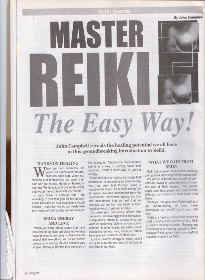 Attune Yourself To Reiki The Cosmology Way that has been printed in Australia by a man named John Campbell. He is a wonderful person, who has studied and is now sharing his Attainments to Reik. From what I’ve read, I feel there are not many people who feel this is the “right way” to become a Reiki Master. After reading this manual, I believe it is the only way…