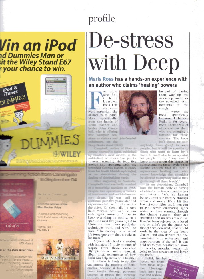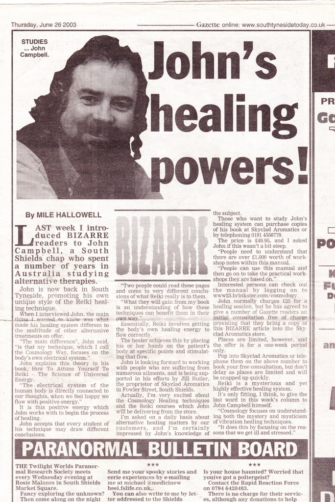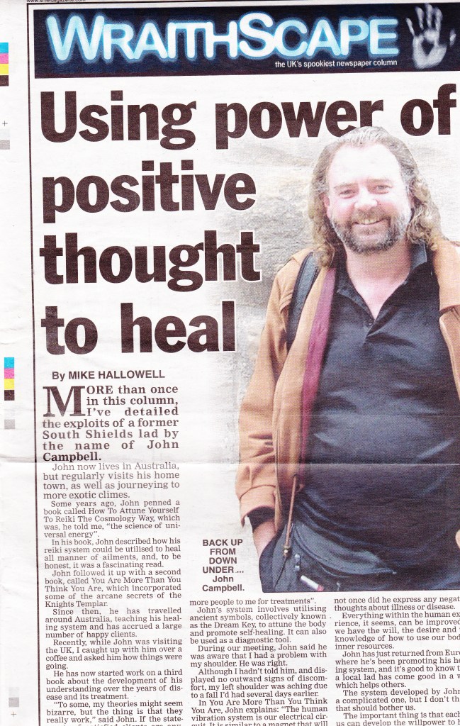 FINDHORN PRESS PUBLISHING-TEACHING REVIEWJohn was born in South Shields Tyne & Wear England…He recognized at an early age that he had an unusual gift and through many experiences and self-exploration has developed a program of Workshops to pass on his knowledge to others…Combining this with his ability to connect others to the all-encompassing energy field, John is able to deliver his Meditation Courses with expertise. His humor compassion and authenticity endear him to those he works with….Angela Brookman Findhorn Press Publishing.
