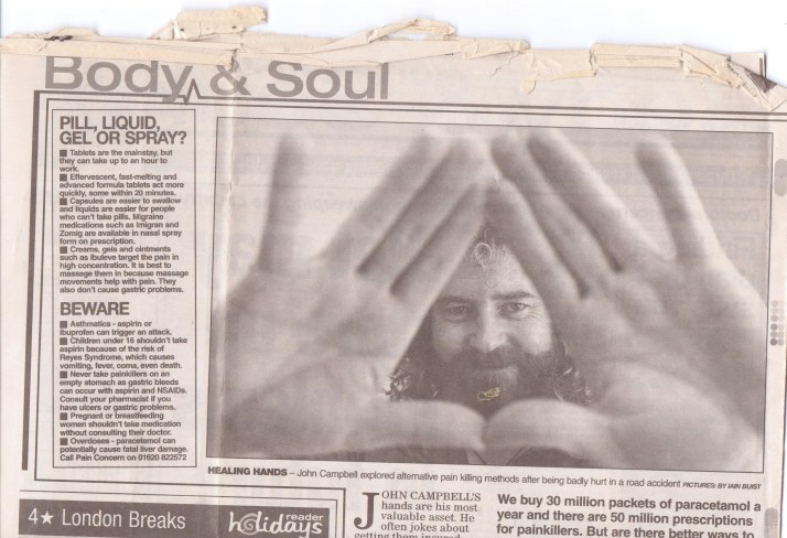 I could feel everything. It felt like John was Drawing the pain out of my body. LITERALLY CHANNELING THE PAIN OUT OF MY BODY WITH HIS HANDS. Three months later I am down to just 60 milligrams of Morphine a day. Some days I only have to take 30 Milligram Morphine Tablet in the morning. My pain has reduced considerably. I have seen my doctor last week and he said: “My Leg was the best he has ever seen it, Plus I agreed with me that I shouldn’t need a Spinal Operation on my Lower Back and to carry on with the treatments with John Campbell”. I am walking better and less hunched, which was also helping with the Osteoporosis of my Spine.